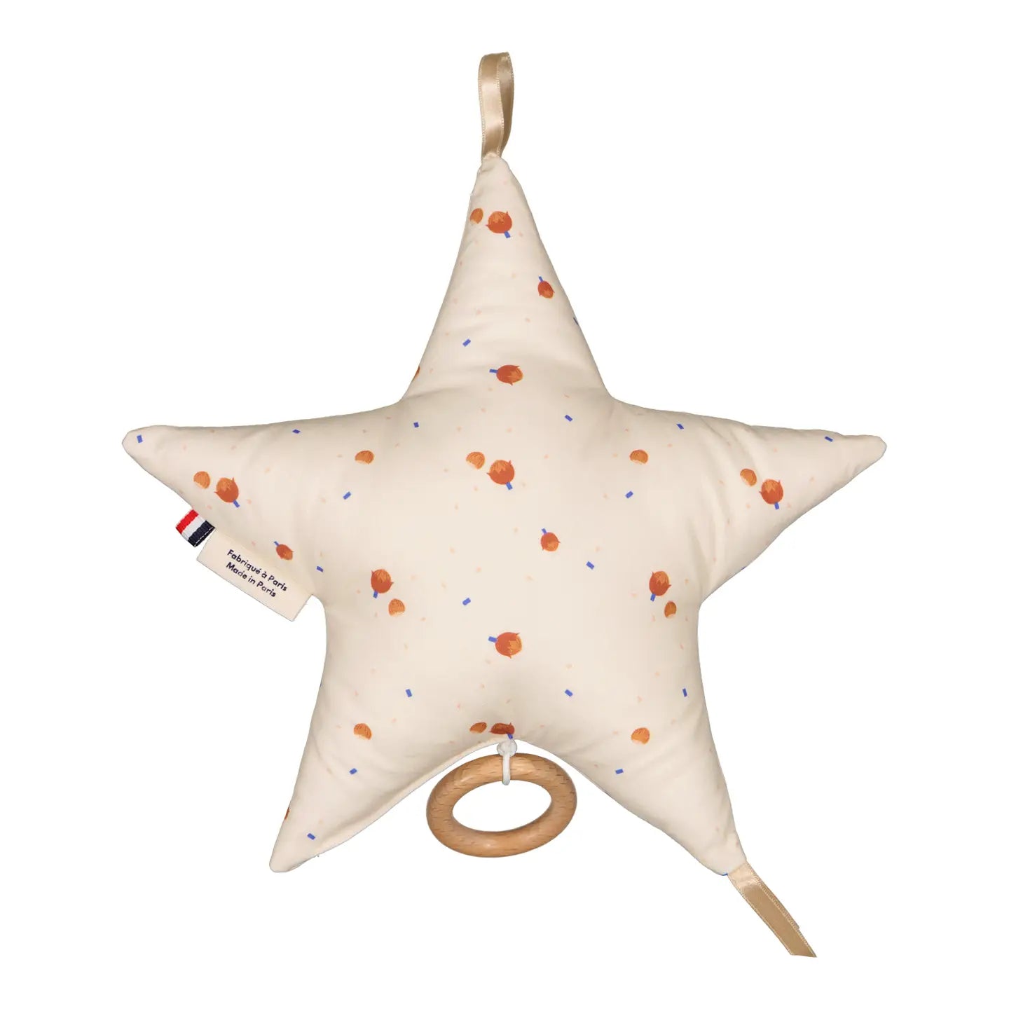 La Peluche musicale Étoile Noisette, conçue par Mellipou, est un adorable coussin musical qui allie charme poétique et utilité bienveillante. Sa forme d’étoile est facile à attraper pour bébé, tandis que son mécanisme musical enchante l’heure du coucher.