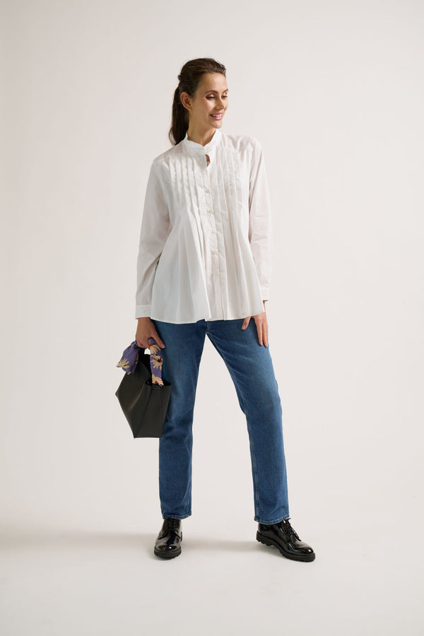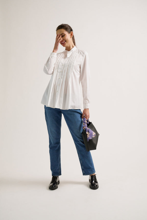 La blouse Ika allie élégance naturelle et fonctionnalité discrète. Confectionnée en 100 % coton d’origine espagnole, elle offre une douceur respirante idéale pour la maternité. Son plissé raffiné sur le devant et sa coupe évasée créent une silhouette fluide et légère. Les boutons sur le buste permettent un accès facile à l’allaitement, tout en préservant une allure habillée.