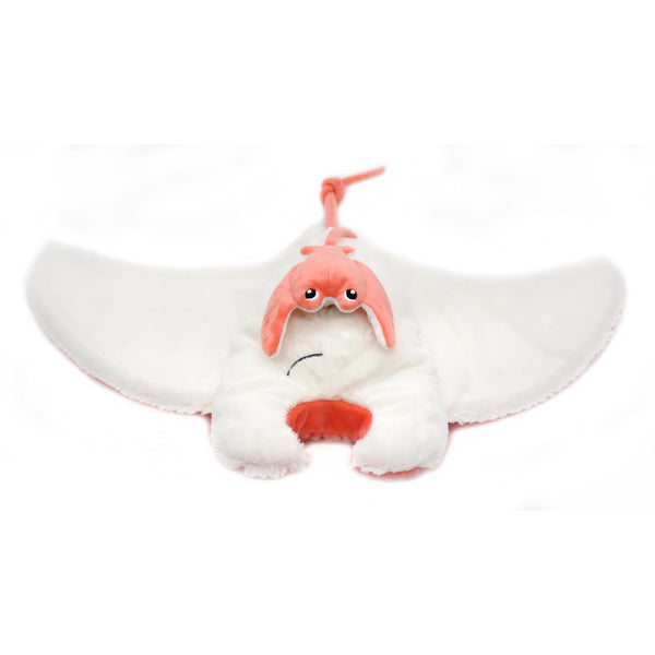 Plongez dans un océan de douceur avec la raie manta corail et son adorable bébé caché sous son aile ! Entièrement réalisée dans un velours côtelé ultra moelleux, cette peluche aux yeux tendres deviendra rapidement le doudou préféré de votre mini matelot.