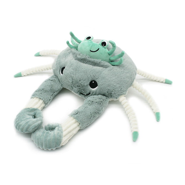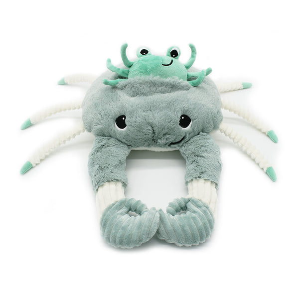 Voici le Crabe Menthe, un doudou pas comme les autres, à la fois peluche et compagnon de siestes ! Avec son corps moelleux et ses pinces toutes douces en velours côtelé, il invite les tout-petits à se blottir contre lui pour des instants rassurants. Son petit crabe amovible ajoute une touche ludique pour stimuler l’imaginaire des enfants et partager des moments complices.