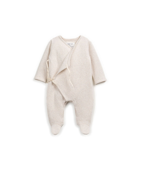 Pensée pour les tout premiers instants, cette combinaison en coton recyclé et régénéré est une véritable seconde peau. Elle adopte une forme cache-cœur délicate avec de jolis liens à nouer sur le côté, évitant tout contact avec le visage de bébé. Sa matière légèrement chinée est à la fois douce, respirante et pleine de charme naturel. Les pieds intégrés assurent une chaleur continue, idéale pour les nouveau-nés. Avec ses manches longues et sa fermeture croisée, cette combinaison offre un habillage facile et tout en tendresse.
