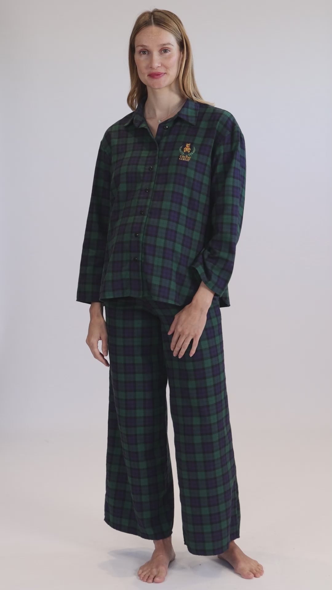 Le motif à carreaux, inspiré des classiques « chemises de nos grands‑pères », se marie à une délicate broderie ourson, pour une note poétique pleine de réconfort.